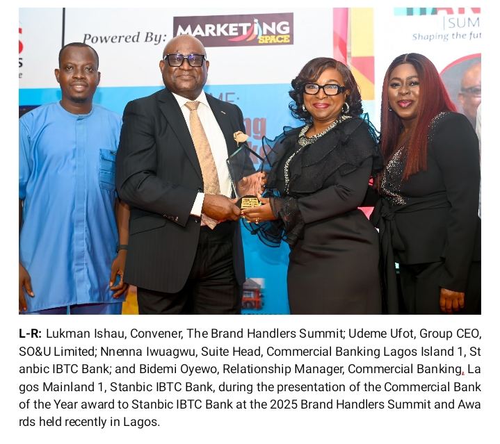 Stanbic IBTC Bank, a subsidiary of Stanbic IBTC Holdings, has been named Commercial Bank Brand of the Year at the Brand Handlers Summit and Awards in Lagos, reinforcing its place as one of Nigeria’s most influential and customer-focused financial brands.