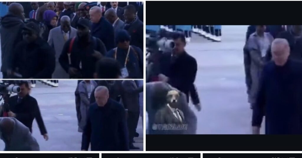 The incident occurred as he walked alongside Turkish President Recep Erdogan.