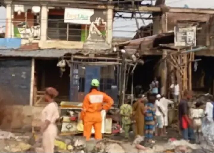 Four shops dealing on electronics in a building at Ikotun in Lagos State, early on...